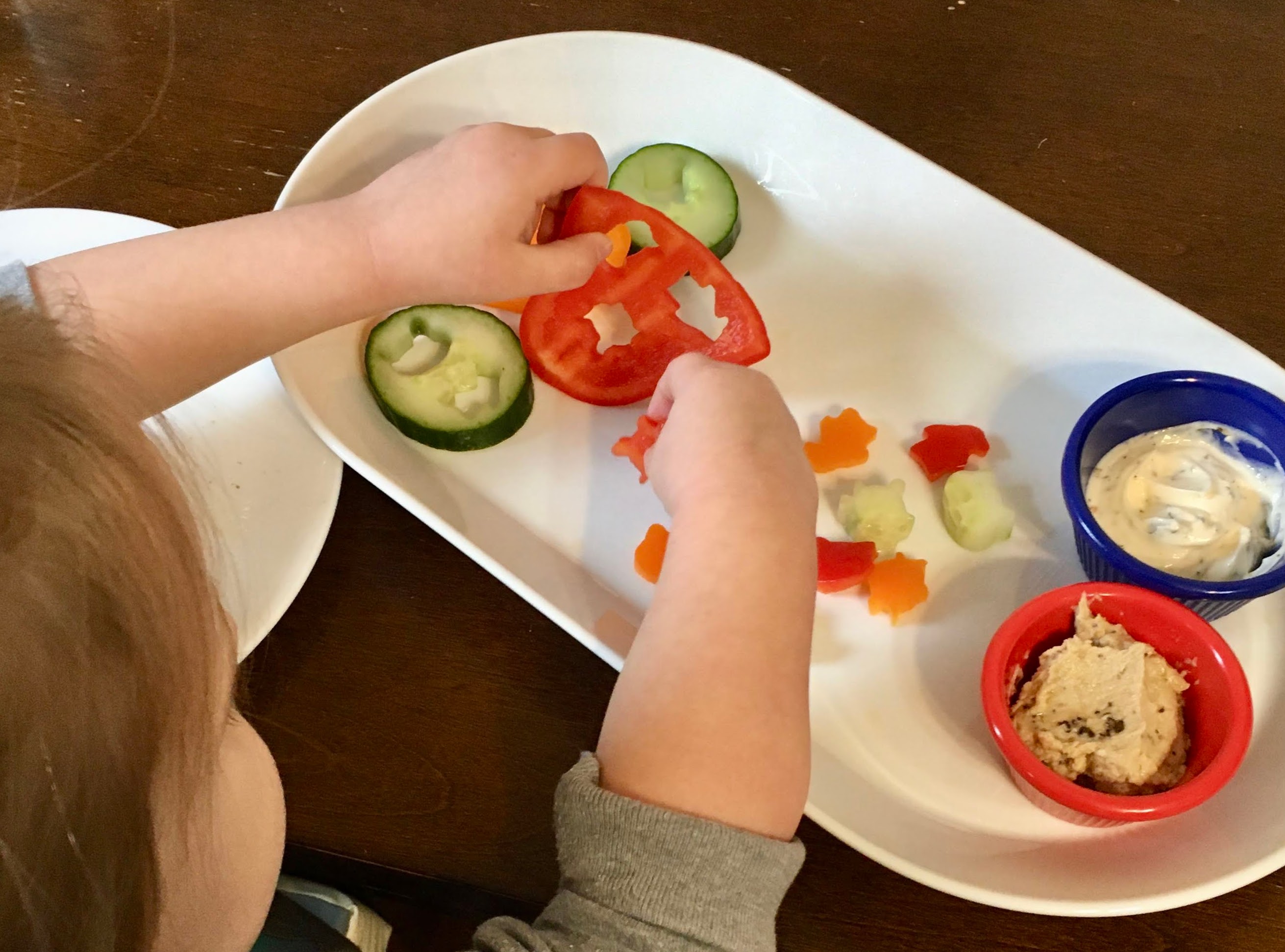 Dipping is fun for kids. It makes mealtime more like playtime. Putting a small bowl of dip on their plate of salad invites interaction. Even if they don’t eat the food, they are touching and interacting with it in a positive way.
