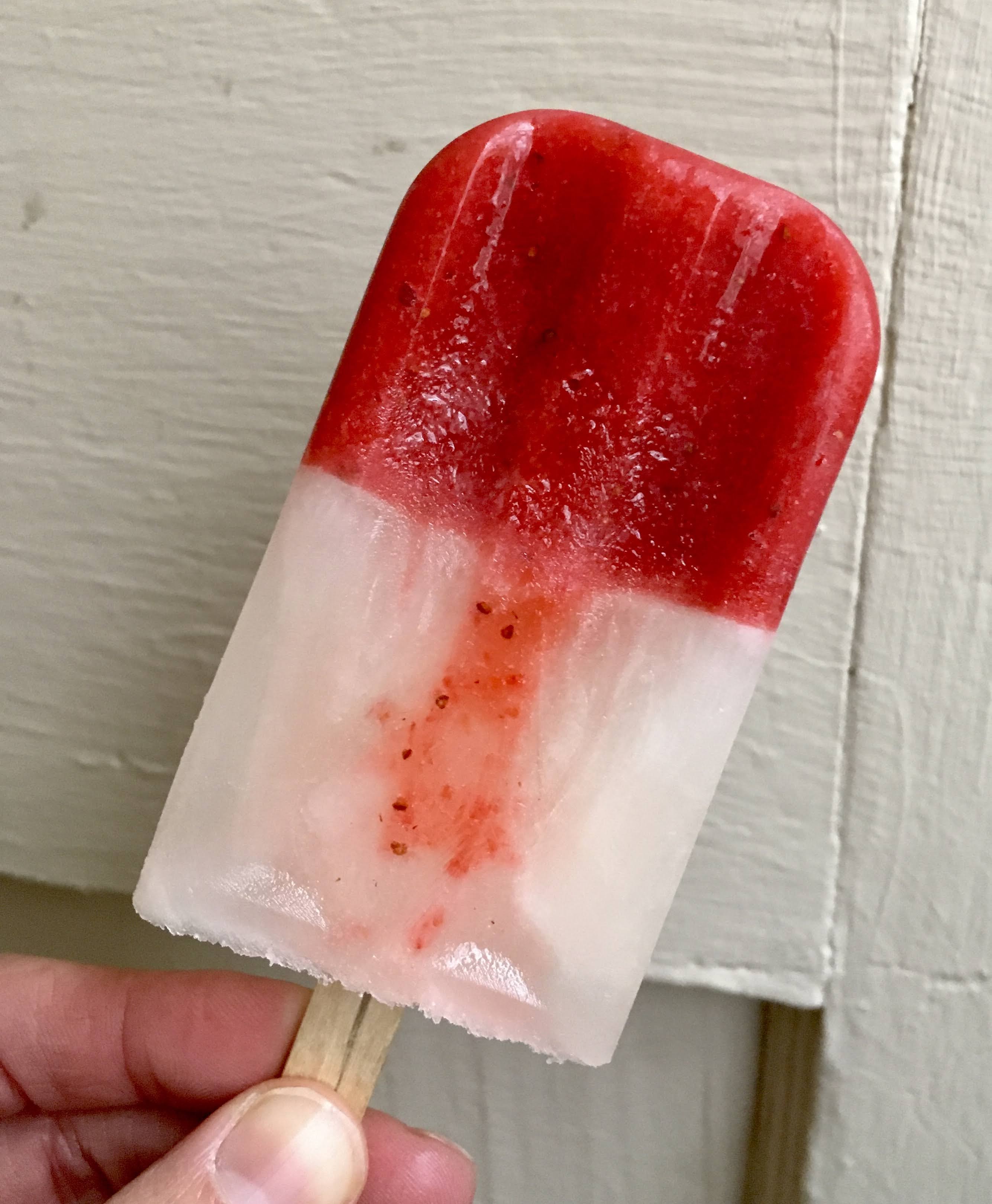 - Add strawberry mixture to bottom of popsicle mold and freeze for 20 minutes, or until firm.