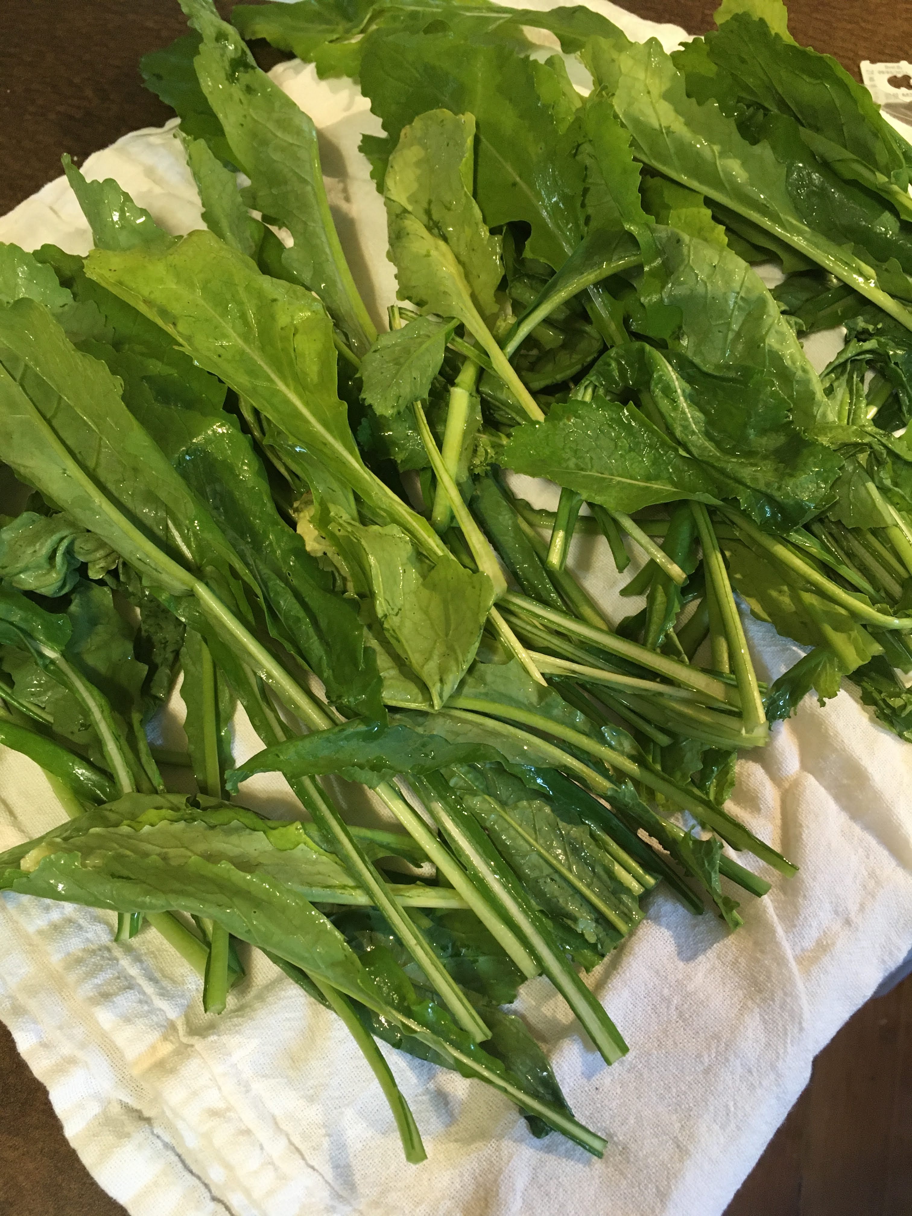 For this recipe, we are only using the turnip greens, but I highly recommend trying your hand at turnips. They are similar to a potato, but have a mild bitterness. I love them boiled and then mashed into garlic potatoes (see recipe next week).