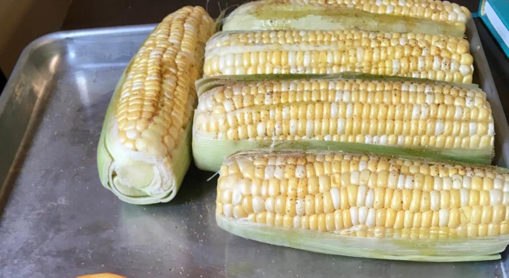 - Remove as much silk (little strings around corn) as possible from corn.