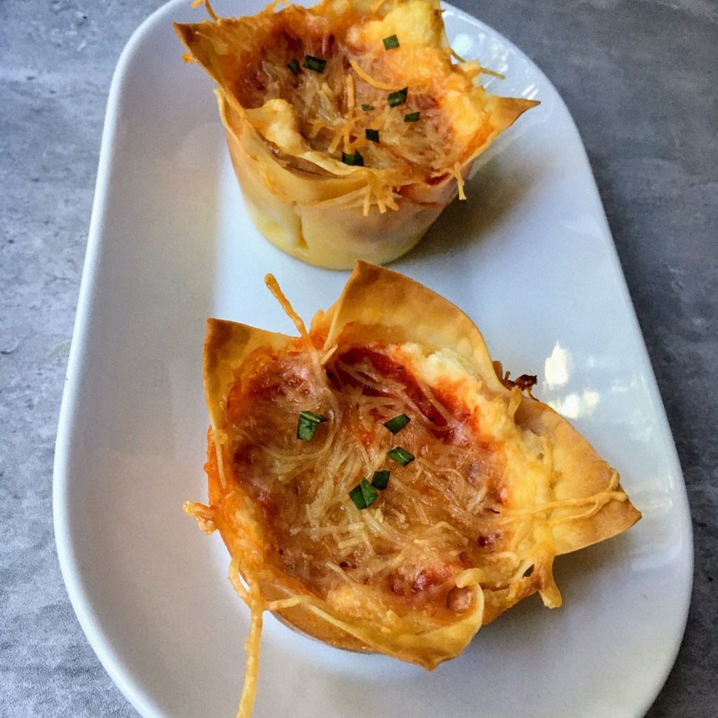 - Line each muffin well with 1 wonton wrapper. Press down.
