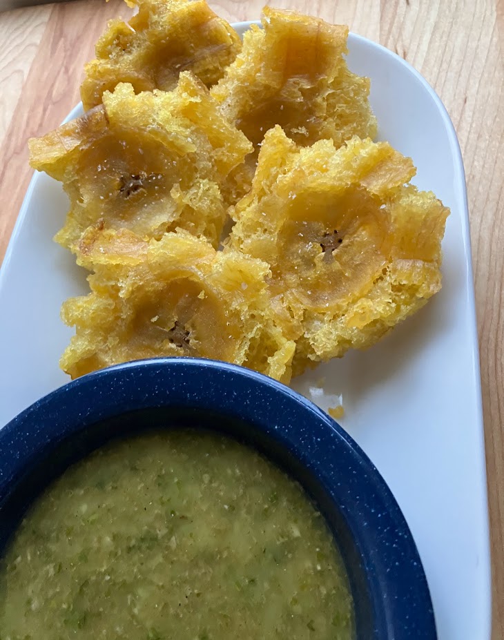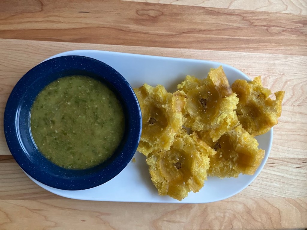 2 green plantains (must be green still for tostones)