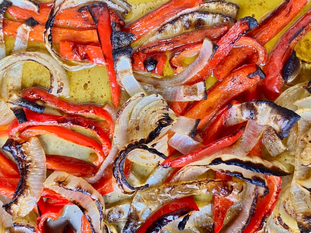 I could eat these peppers and onions all day. Sweet, smoky, and perfectly tender.