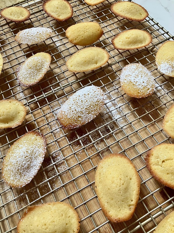 This recipe was used during our Cakes Course last year. I had such fun picking out perfect tiny cakes that we could make in the hour and a half classes. Bake time can be quite constricting for cooking classes. I am so glad this led to a deep dive on madeleines and madeleine baking for me. For those of you who don’t know, madeleines are small sponge cakes baked in a specific mold shaped like a shell. You can buy a pan that looks almost like a cupcake pan, but instead of round wells, there are shell shaped ones. They originated in France, and have since spread across the globe.