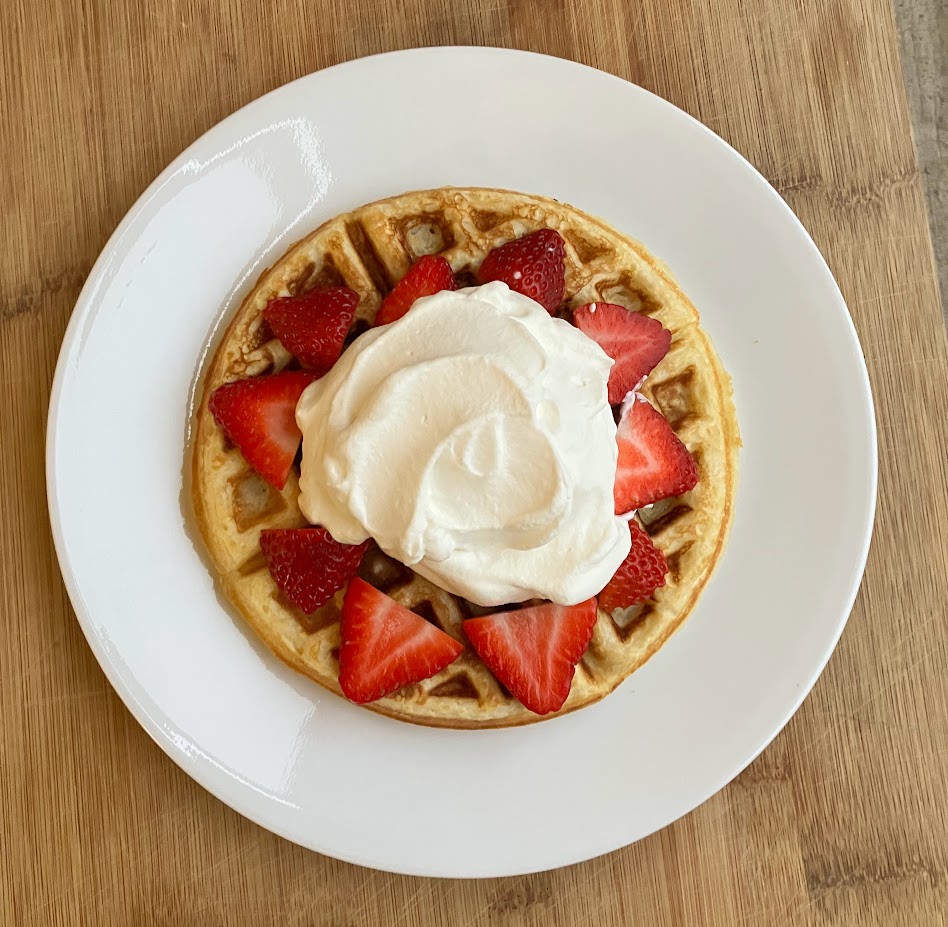I use this whipped cream on pancakes, waffles, dipping fruit, with pie, as a light frosting, and any number of other things.