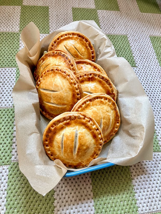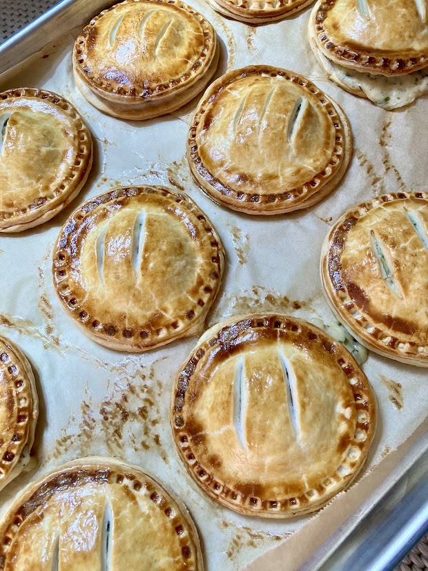 The filling for these little flakey wonder pockets is a simple gravy that packs a lot of flavor for minimal effort. If you want to increase the protein on these, feel free to add a can of white beans or chopped chicken. I like them as is for a creamier texture.