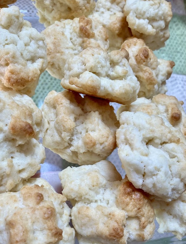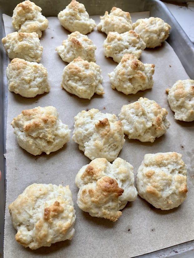 I fell in love with this biscuit recipe when I started making them on Sunday mornings for our Front Yard Neighbor Coffee that we do every Sunday morning in our front yard, as the name implies. I will bake up a sheet of biscuits, and the neighbors wander over with their coffee in hand and children underfoot. The youths run amuck, while the grown ups catch up about their week and the comings and goings of the neighborhood. I love having something low-lift that still feels like a special treat. We put out honey, butter, and whatever jam we have knocking around the fridge at the moment. I am usually only half awake when I toss these in the oven, and they come out perfect every time.